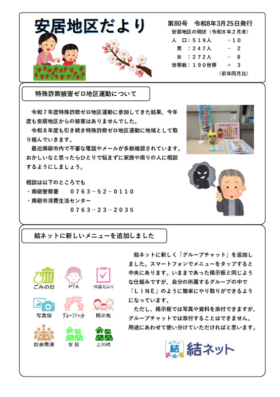 当地区は一級河川の小矢部川の左岸と、安居山に挟まれた地域に位置する農村地帯です。