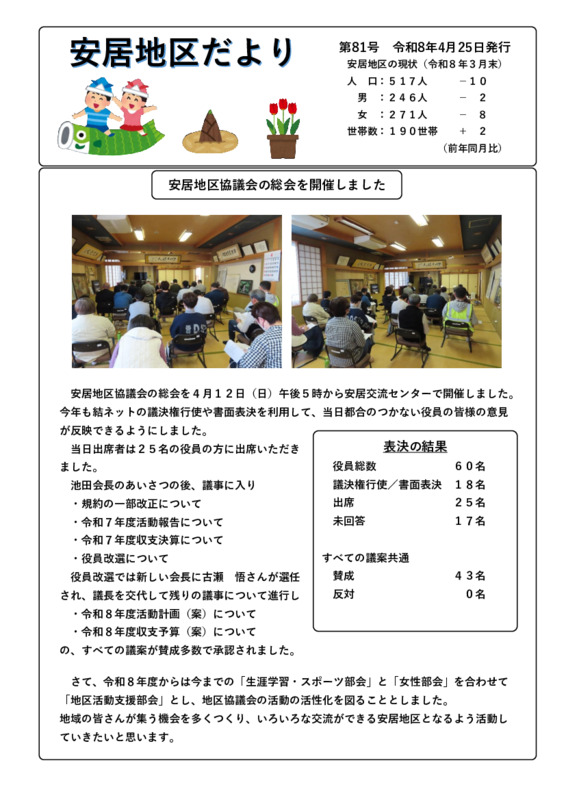 地区だより発行しました。 安居地区協議会